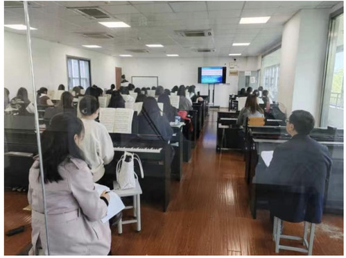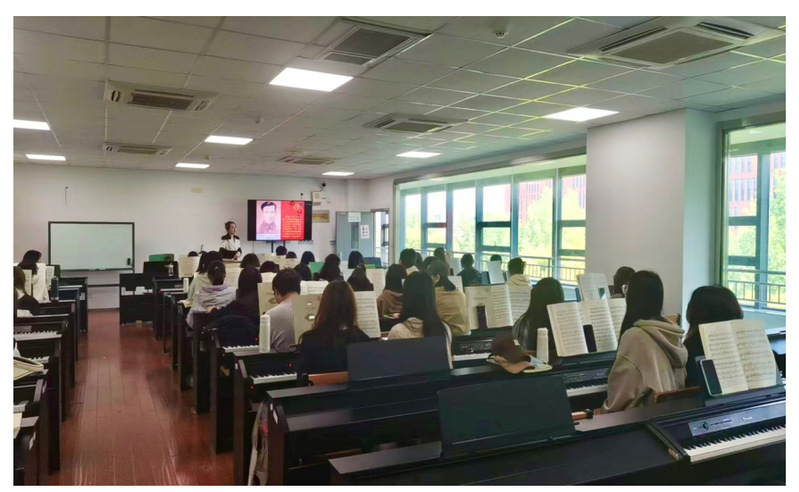 2023年4月26日上午,我院钢琴教师毕莹在实训室316,面向21音乐表演(单1)班学生,成功开展了一堂生动的钢琴基础公开课。艺术学院党总支书记谢华永、院长费诗伯、副院长陶冶、音乐舞蹈教研室主任李娅敏和专业教师前来听课。
