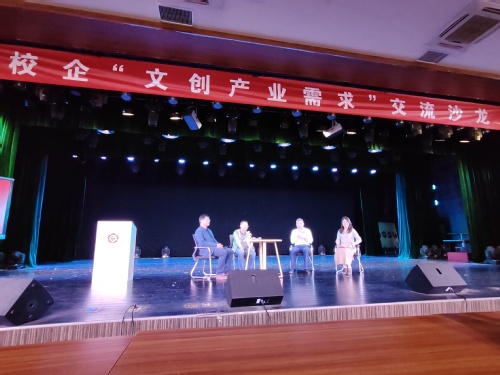 本次文创展还与我校艺术学院的毕业设计作品展相融合,展出了来自泰州市文化产业协会会员单位、泰州文化创意协会会员单位和我校艺术学院2023届毕业生的文创作品。本土企业家申晓明、刘克滨现场与学生互动,共同探讨“百姓日用即道”新品设计与开发工作,并落实有关产品的开发对接。