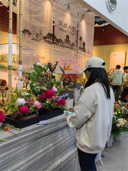 王希晶老师作为艺术插花项目的参赛成员之一,从2022年7月开始便配合泰州市住房和城乡建设局(园林局)积极训练。在前期备赛期间,王希晶老师进行了大量的调研构思,反复揣摩创意方案,为指定主题的中式插花作品做了充分的准备和训练。2023年4月23日,王希晶老师跟随比赛团队前往南京选购参赛花材,第二天进入连云港花博园主展馆,与团队成员凝心聚力,精心布展,顺利完成主展馆展区的创作与布置。