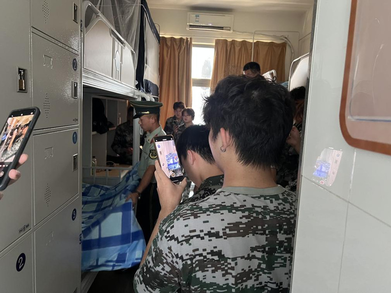 一时间,各宿舍楼内一派热火朝天的劳动场景。汗水悄然浸湿发梢,却无人轻言放弃,每一张年轻的脸庞上都写满专注与执着。在一次次尝试与修正中,大家逐渐领会要领,手中的被子也从起初的松垮潦草,变得初具形态、渐趋规整。点滴进步的喜悦洋溢在每个人心间,更让人体会到何为精益求精的工匠精神、什么是一丝不苟的纪律意识。